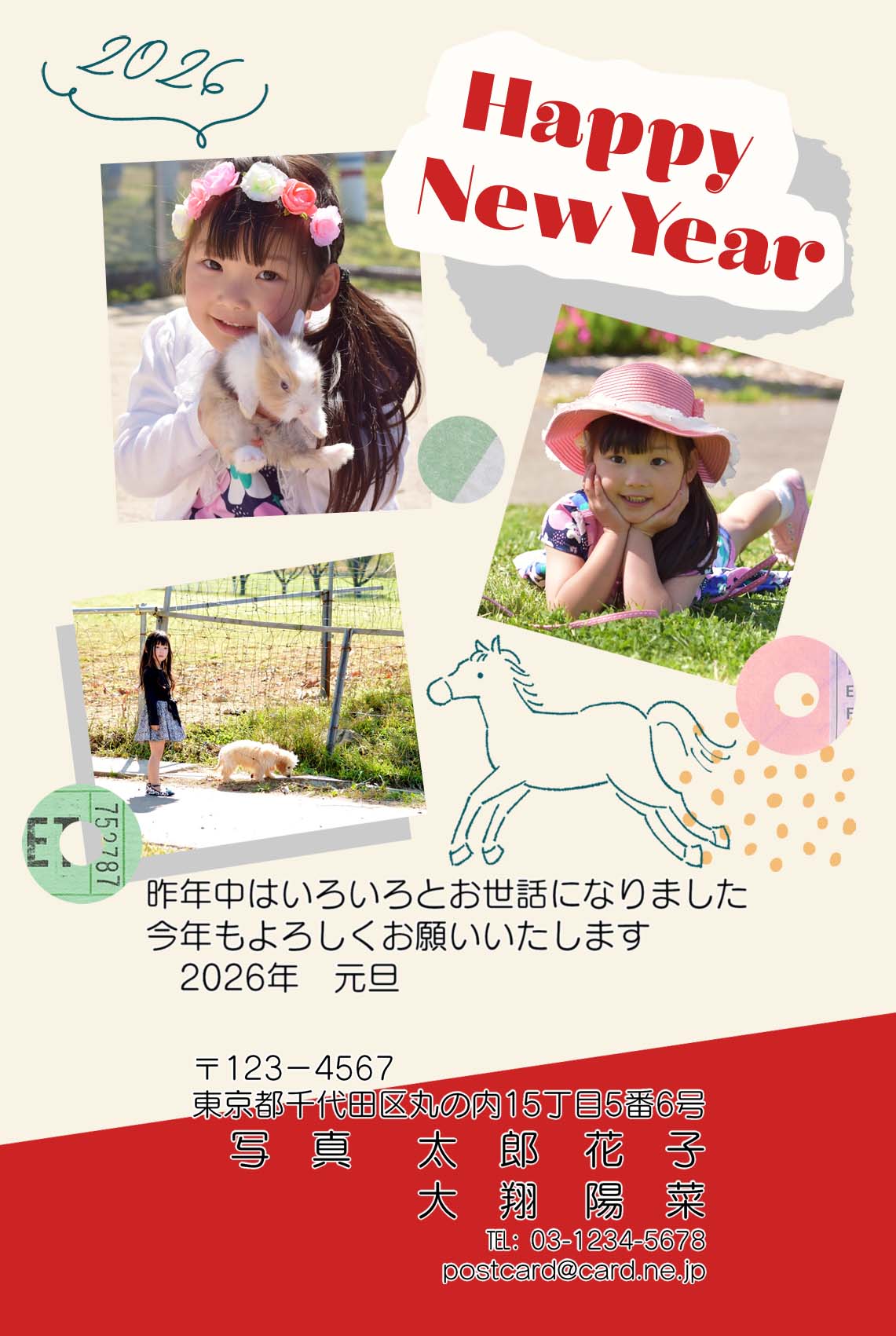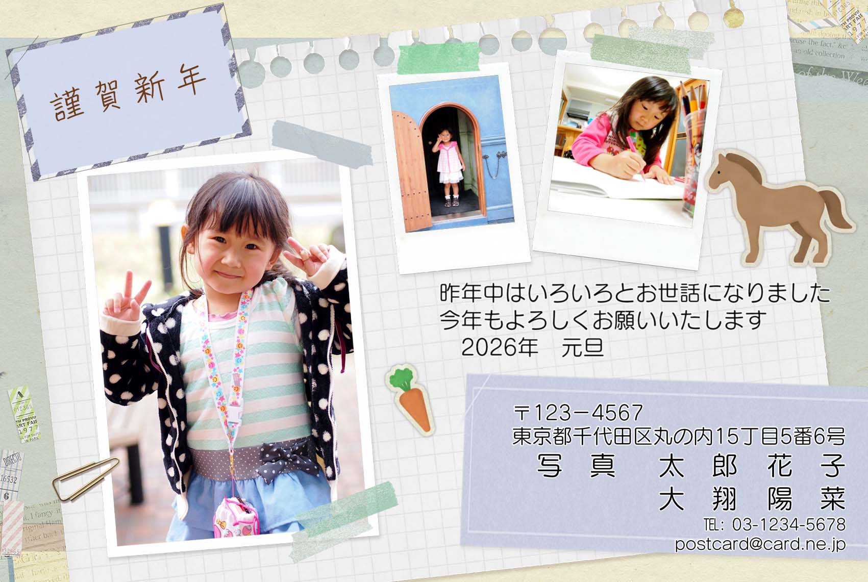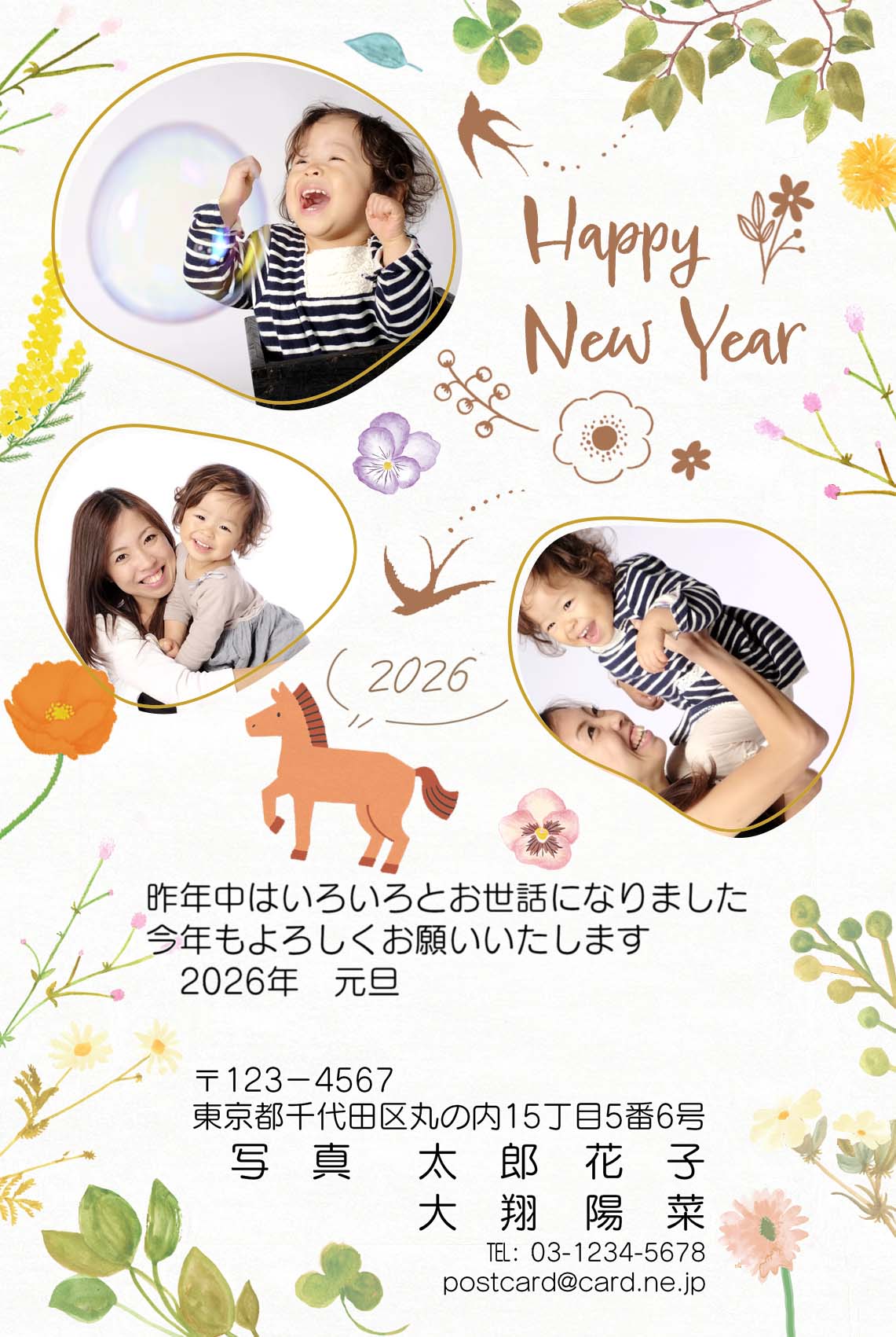 ベースデザイン8種類×カラー3種類×賀詞3種類×写真枠のバリエーション3種類の合計216通りのデザインをお選びいただけます。